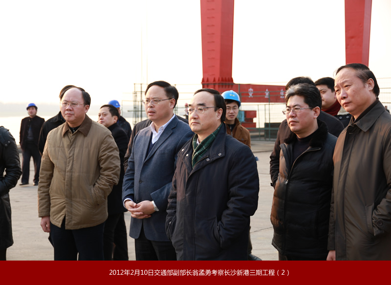 2012年2月10日,交通運輸部黨組副書記、副部長翁孟勇來長沙新港考察時強調(diào):長沙新港變化一次比一次大,當前要借助湖南加大水運發(fā)展力度的有利契機,加快樞紐、港口和湘江2000噸級航道提升建設,更好地服務經(jīng)濟社會和航運的持續(xù)發(fā)展。